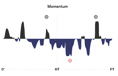 Let’s start with the 3 games in which Spurs failed to score. Here’s the momentum chart against Arsenal:
