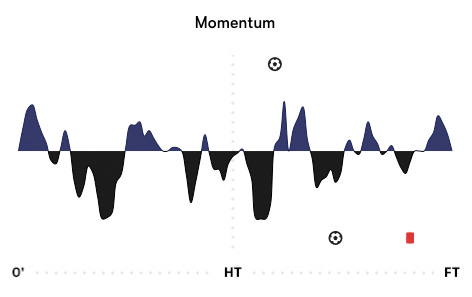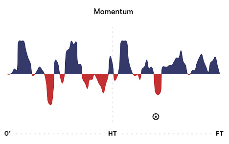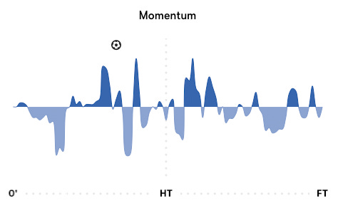 Researchers have debated whether ‘momentum’—roughly, the tendency of something going well in sport to stay going well because it’s going well (or the opposite, to keep going badly because it’s going badly)—is a real thing. But this post isn’t about psychological ‘momentum,’ but statistical momentum in football, i.e. field tilt.